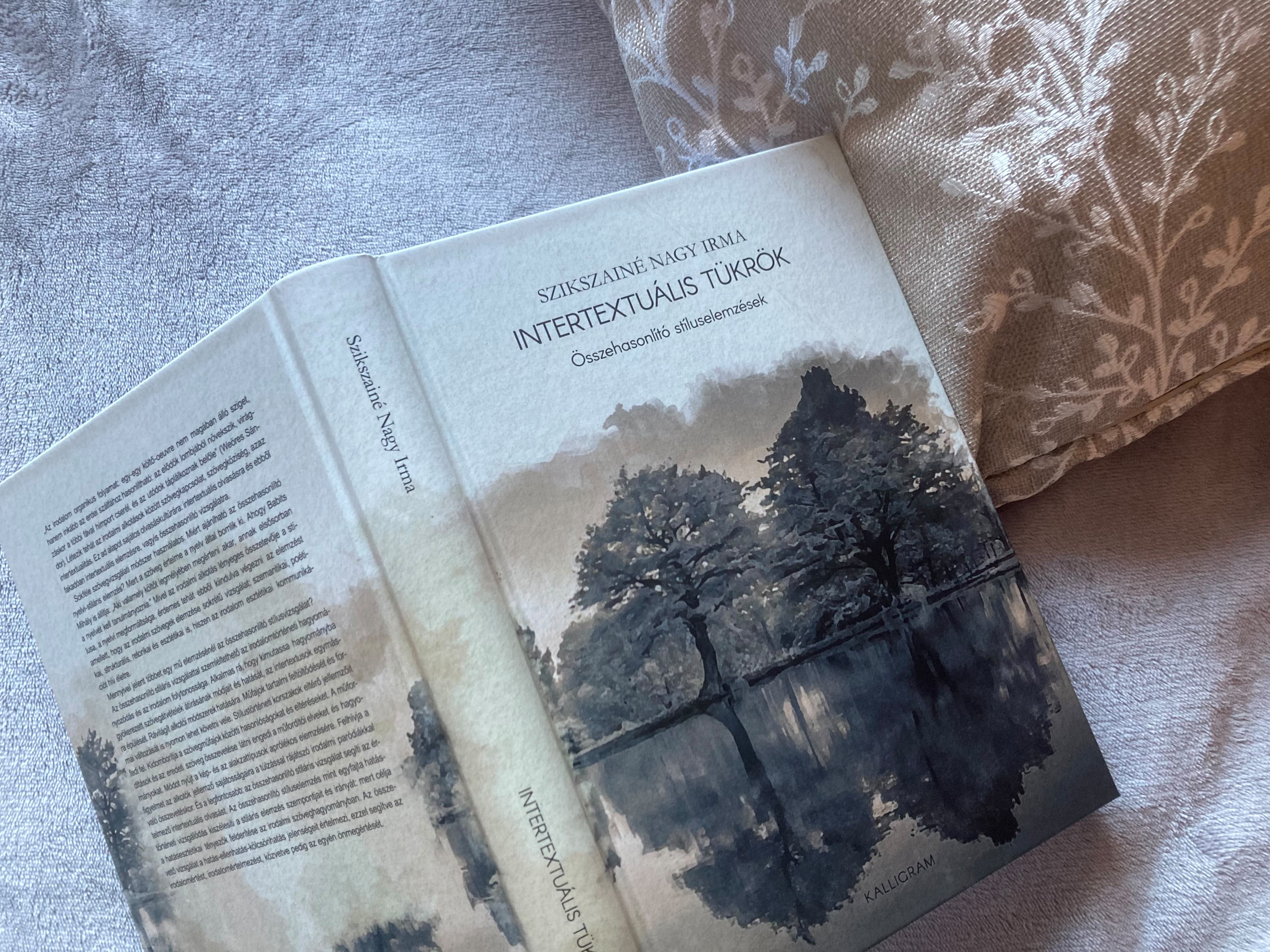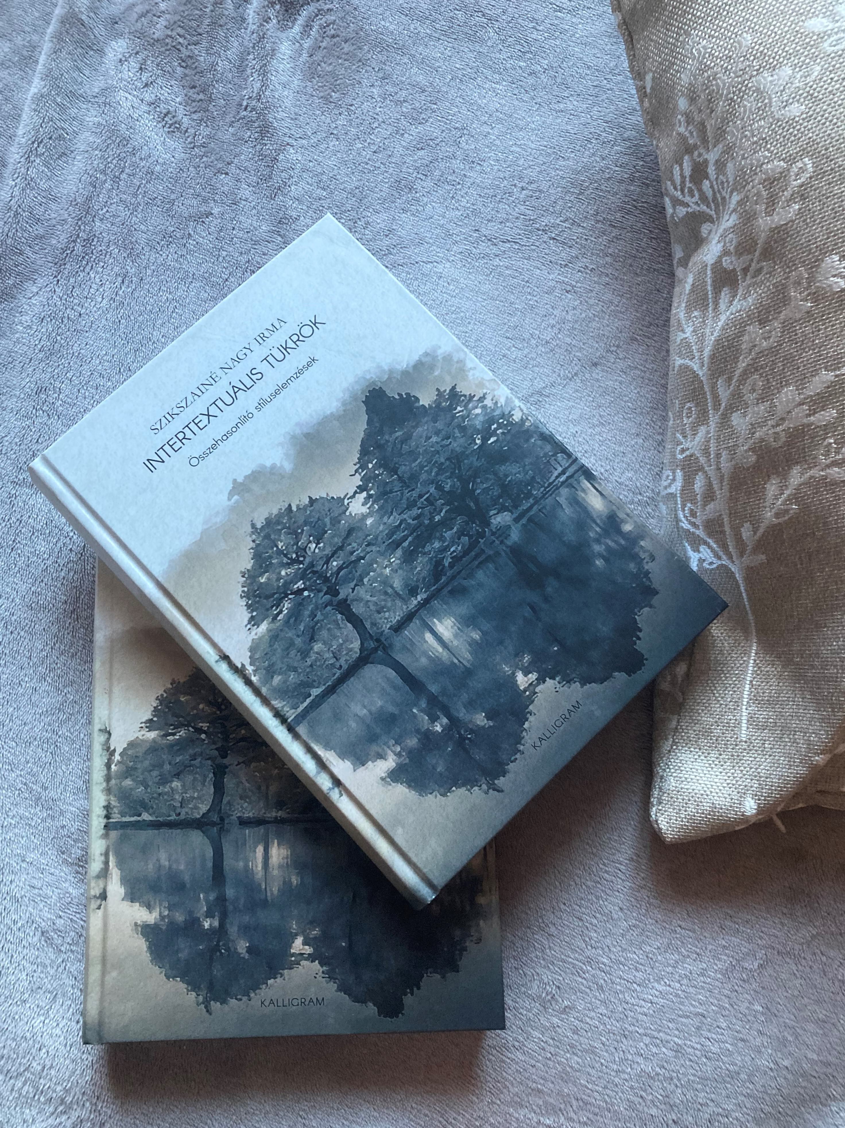 book cover design The book, Intertextuális tükrök was published by Pesti Kalligram Kft. in 2021 with the support of the Hungarian Academy of Sciences (MTA). As you can guess at first glance, I have a special attachment to the book, as its author is my grandmother, Irma Szikszainé Nagy. During designing the cover, I wanted to visualize the "mirrors" in the title in some form, so I chose a landscape, where we see water and the trees reflected in it. I originally found a photo that was captured, but I imagined some more plastic way, so I turned the image into a watercolor effect with the help of graphic programs. In the text parts, I blurred and obscured the background, and gave a watercolor paper structure as a basis. könyv borító tervezés Az Intertextuális tükrök című könyv a Pesti Kalligram Kft. kiadásában, a Magyar Tudományos Akadémia (MTA) könyvpályázati támogatásával jelent meg 2021-ben. Ahogy az első látásra is sejthető, külön kötődésem van a kötethez, hiszen annak szerzője nagymamám, Szikszainé Nagy Irma. A borító tervezése során a címben is szereplő "tükrök"-et szerettem volna valamilyen formában vizuálisan is megjeleníteni, ezért esett a választásom egy olyan tájképre, ahol vizet látunk, és a benne tükröződő fákat. Eredetileg egy fényképet találtam, amely megfogott, de valami plasztikusabb megoldást képzeltem el, ezért grafikai programok segítségével akvarell hatásúvá alakítottam a képet. A szöveges részeknél elmostam, homályosítottam a hátteret, illetve akvarell papír struktúrát adtam alapnak.